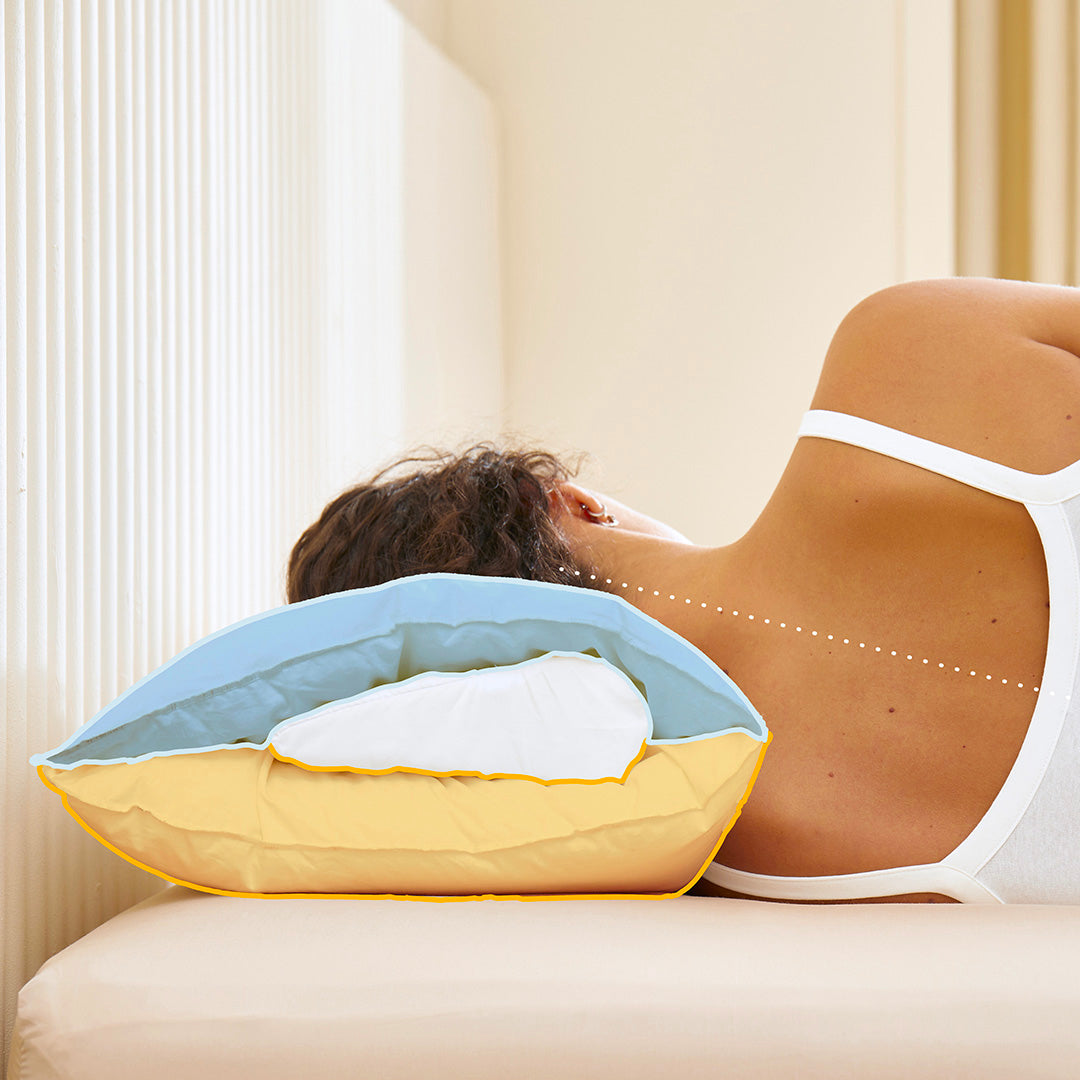 Situado entre los dos compartimentos, aporta un soporte único a tus cervicales garantizando al mismo tiempo el confort de una almohada tradicional.
